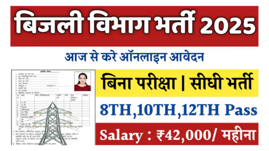 बिजली विभाग भर्ती 2025-26 की पूरी जानकारी। राजस्थान में 2163+ टेक्नीशियन पद और मध्य प्रदेश में 4009 पदों पर आवेदन कैसे करें, योग्यता, महत्वपूर्ण तिथियां और आधिकारिक वेबसाइट देखें। सरकारी नौकरी का सुनहरा मौका।